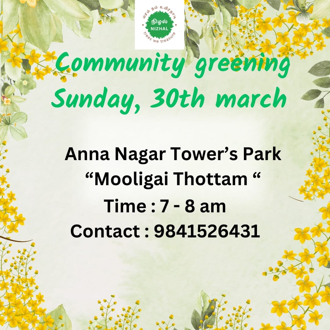 Community greening at Anna Nagar Tower’s Park “Mooligai Thottam” on Sunday 30 March 2025