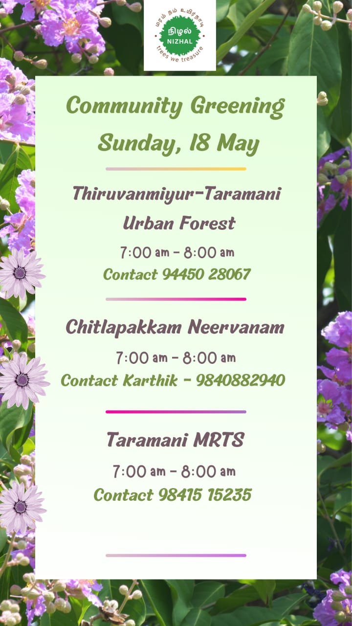 Community Greening at Thiruvanmiyur – Taramani Urban Forest, Chitlapakkam Neervanam and Taramani MRTS on Sunday, 18 May 2025