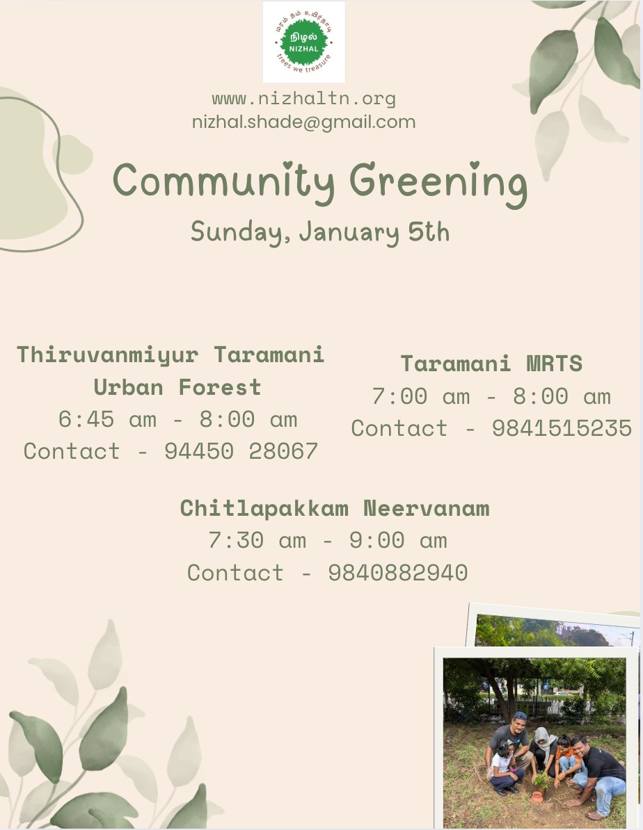 Community greening at Thiruvannmiyur Taramani Urban Forest , Taramani MRTS and Chitlapakkam Neervanam on Sunday 05 January 2025