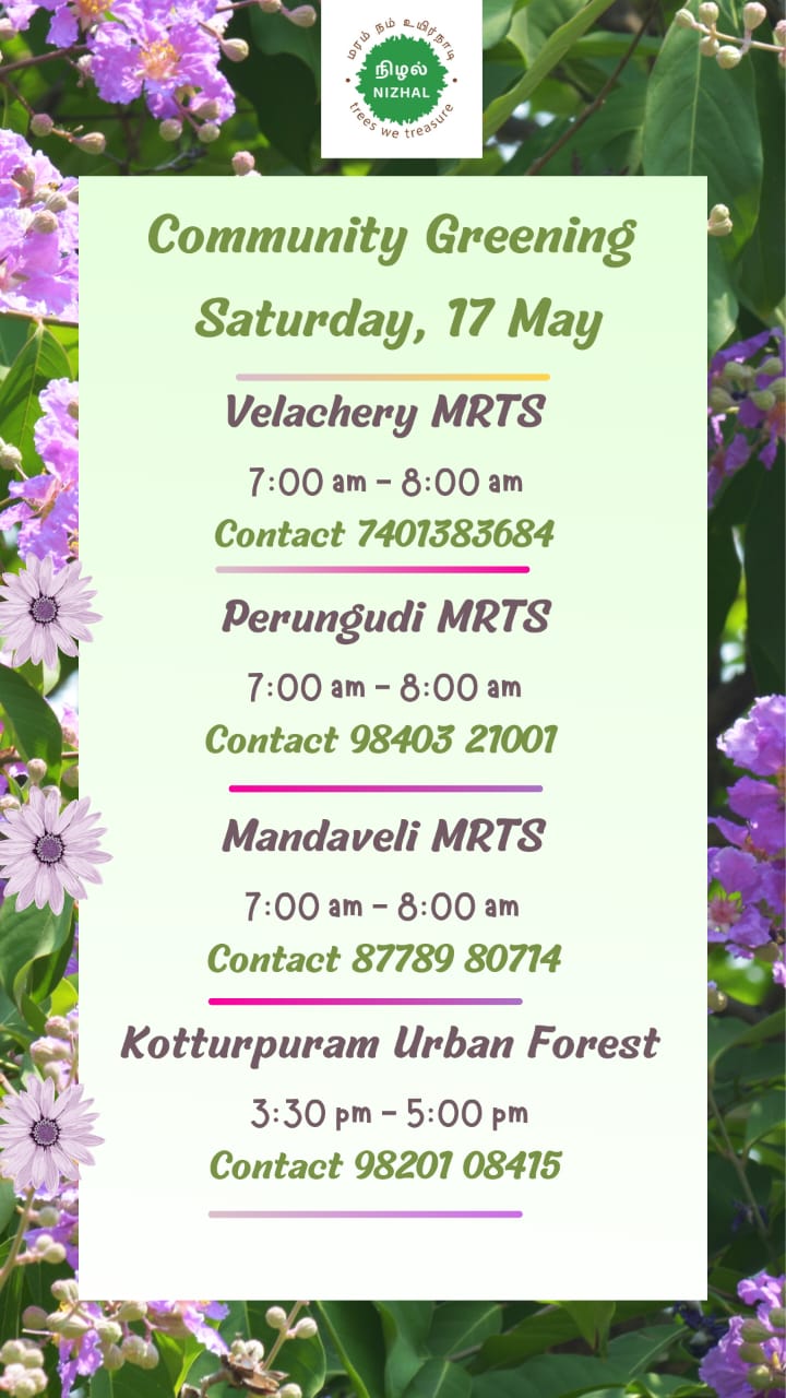 Community Greening at Velachery MRTS, Perungudi MRTS, Mandaveli MRTS and Kotturpuram Urban Forest on Saturday, 17 May 2025